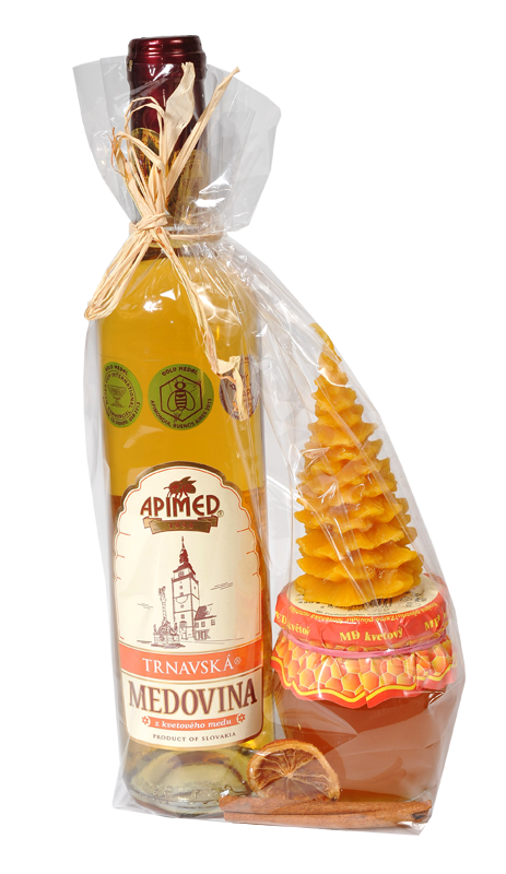 Gift pack contains: 250 g blossom honey in a gift box, 0.5 l Trnava mead and a candle from beeswax stored in decorative bags with ribbon