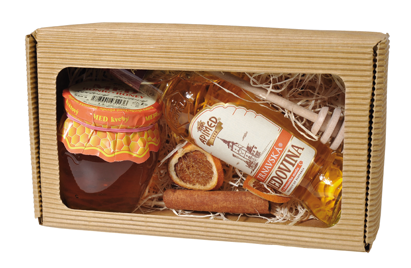 Package includes: 250 g blossom honey in an exclusive gift box, 0.18 l Trnava mead, honey dipper, decoration