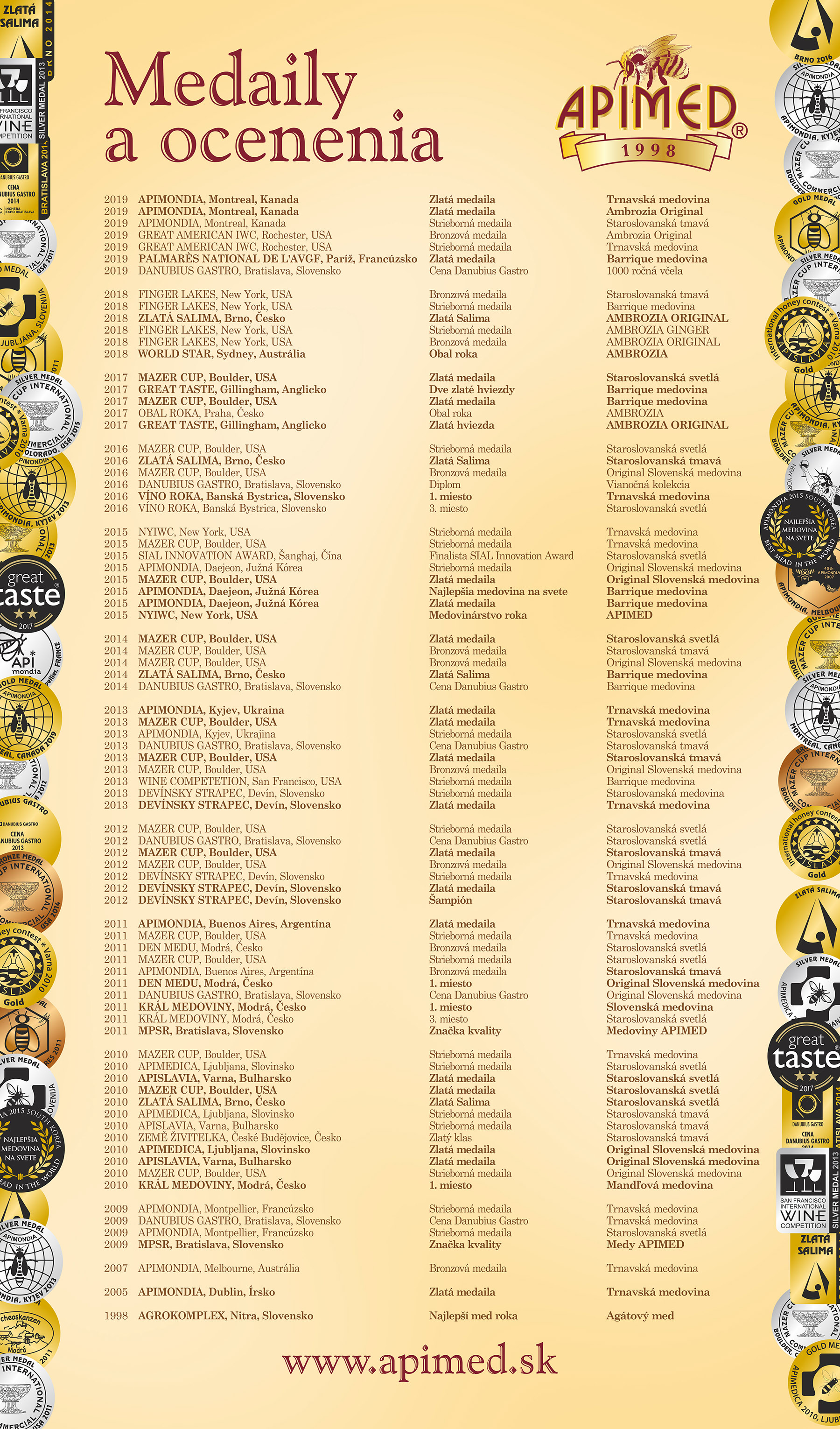 K degustácii medovín neodmysliteľne patrí aj občerstvenie, komentovaná prehliadka Villy Apimed, medovej veže a podzemných priestorov s archívom fliaš. Ak si aj vy vyberiete našu najobľúbenejšiu degustáciu „Chuť Medolandie“  vychutnáte 6 vzoriek svetovo najoceňovanejších medovín Apimed vrátane prvého medového aperitívu Ambrozia. Ako bonus v zimných mesiacoch ponúkame hriatu Trnavskú medovinu. Každý účastník riadenej degustácie dostane aj malý darček.