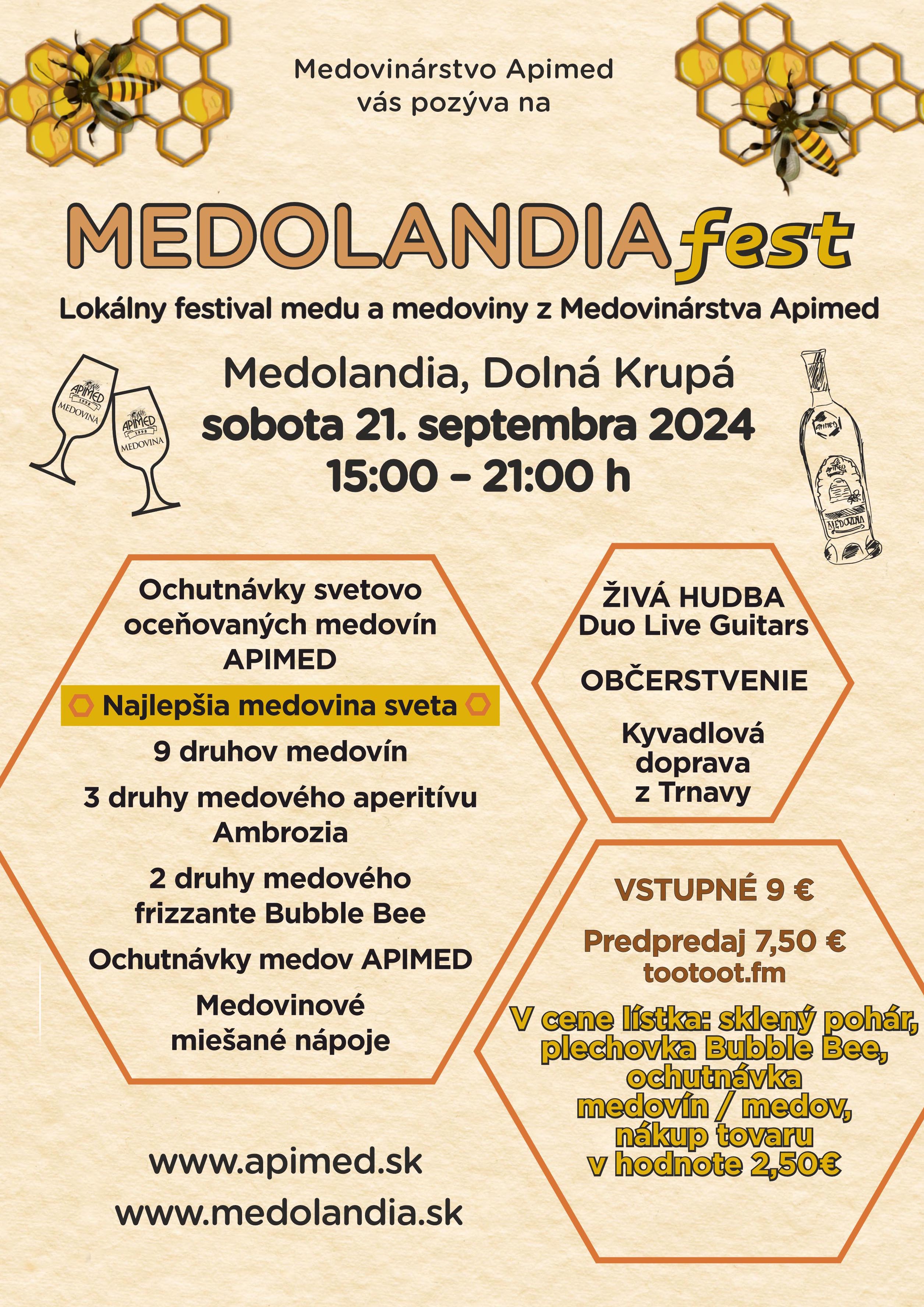- Príďte do Medolandie ochutnať Najlepšiu medovinu sveta a ďalšie svetovo oceňované medoviny Apimed - ochutnávka medov a medovín je už priamo v cene lístka.