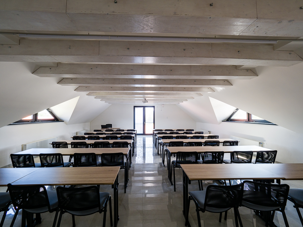 Ak plánujete firemné školenie, workshop či kongresové podujatie, naše priestory s kapacitou 48 miest Vám poskytnú absolútne súkromie celého poschodia vrátane oddychovej zóny, počítačovej miestnosti a veľkej terasy s výhľadom na Malé Karpaty – spolu s plochou 190 m2