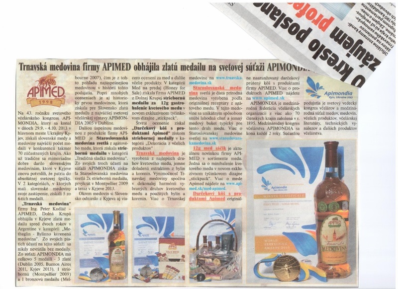 Trnavská medovina firmy APIMED obhájila zlatú medailu na svetovej súťaži APIMONDIA 2013 v Kyjeve