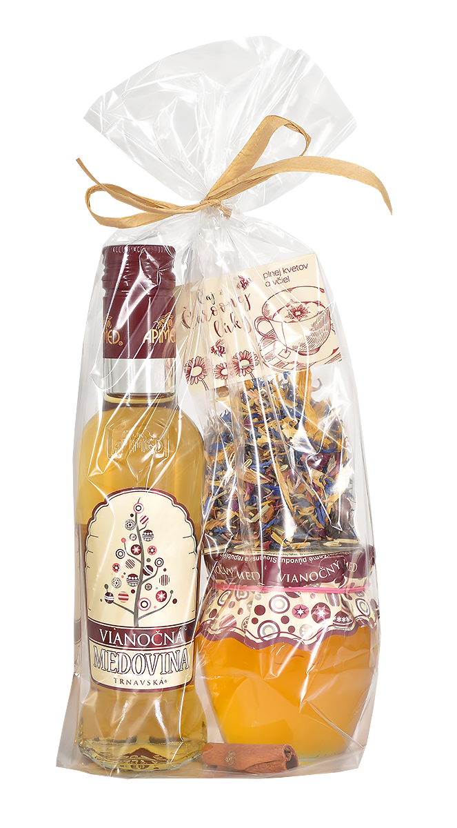 Vianočná medovina 0,18 l, kvetový med 250 g vianočná amfora, Čaj z čarovnej lúky 20g