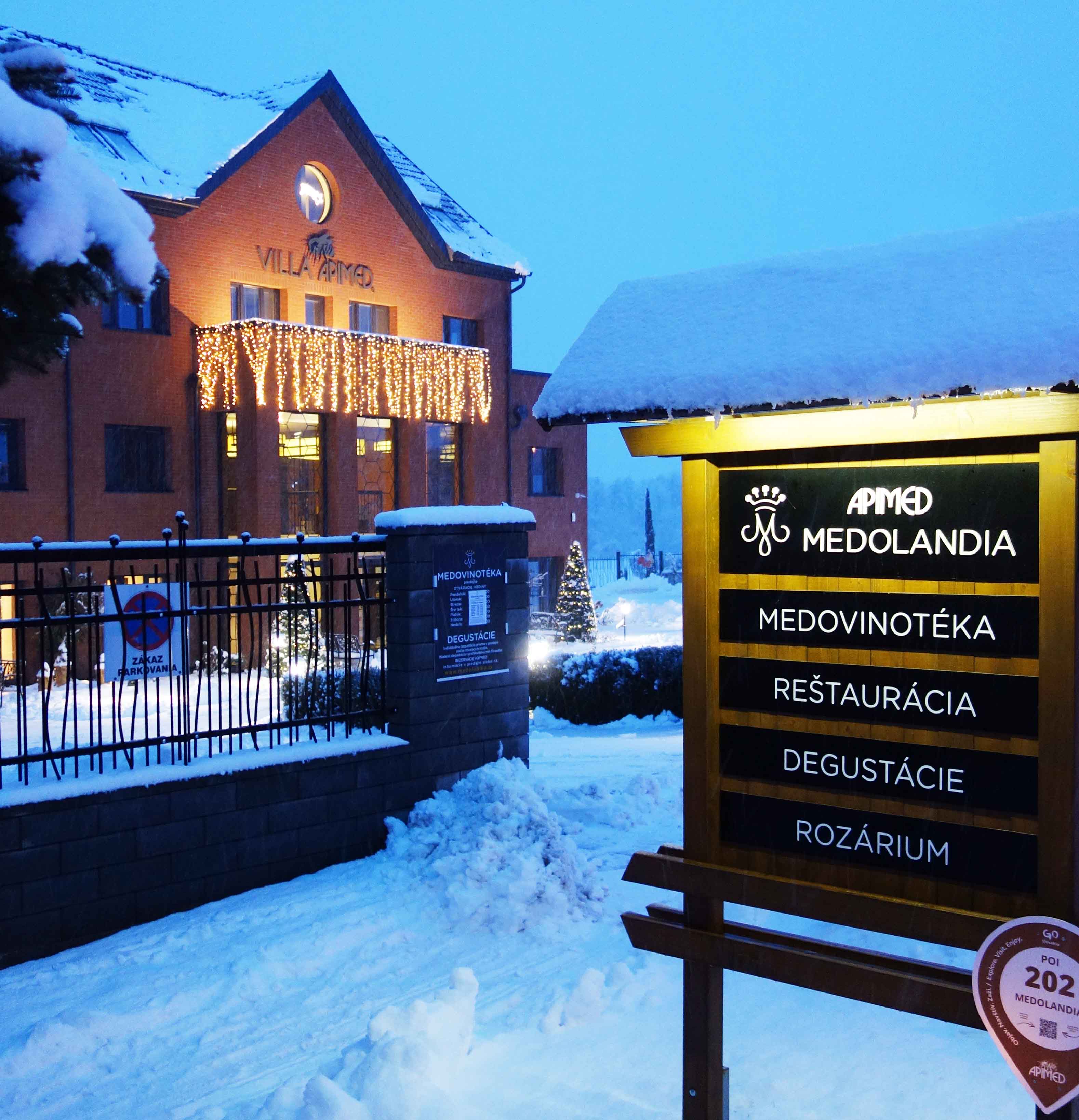 V čase o 15,00 hod a 16,00 hod. sa konajú zimné komentované prehliadky Villy APIMED, medovej veže a podzemných priestorov s hriatou Trnavskou medovinou.